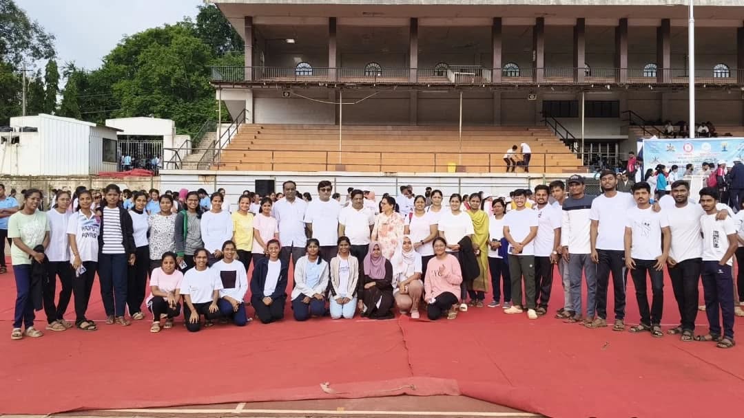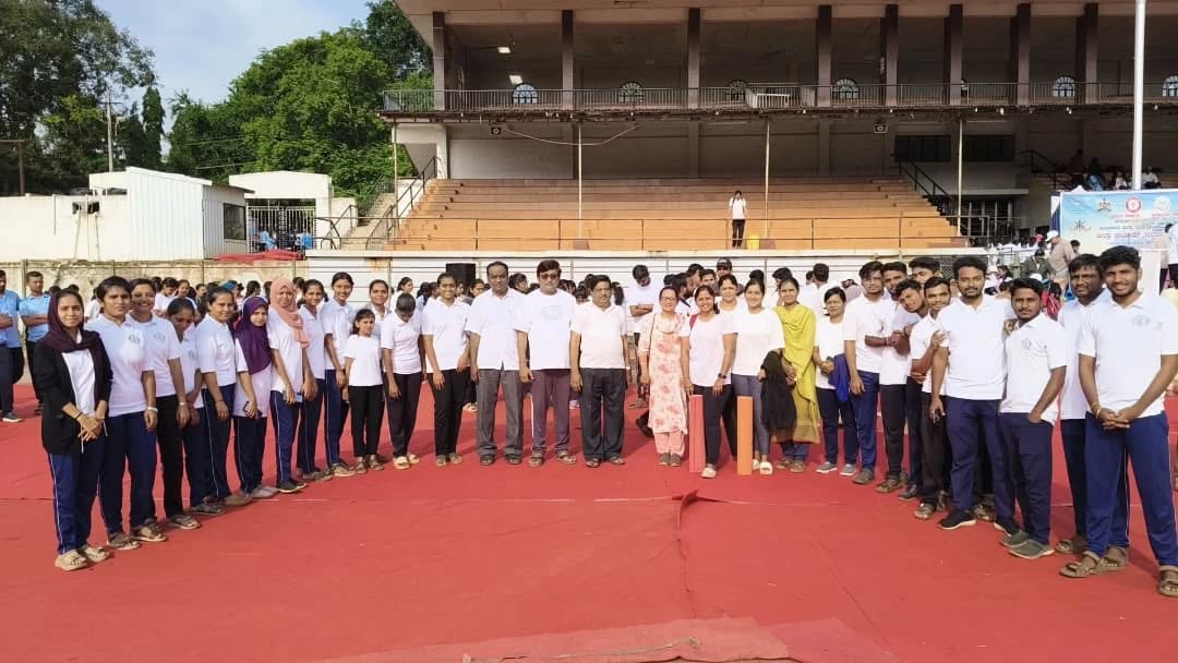 “On June 21, 2025, International Yoga Day was celebrated in association with the District AYUSH Office, Dharwad, with the theme ‘Yoga for One Earth, One Health’ at Dr. R.N. Shetty Sports Arena, Dharwad.”
