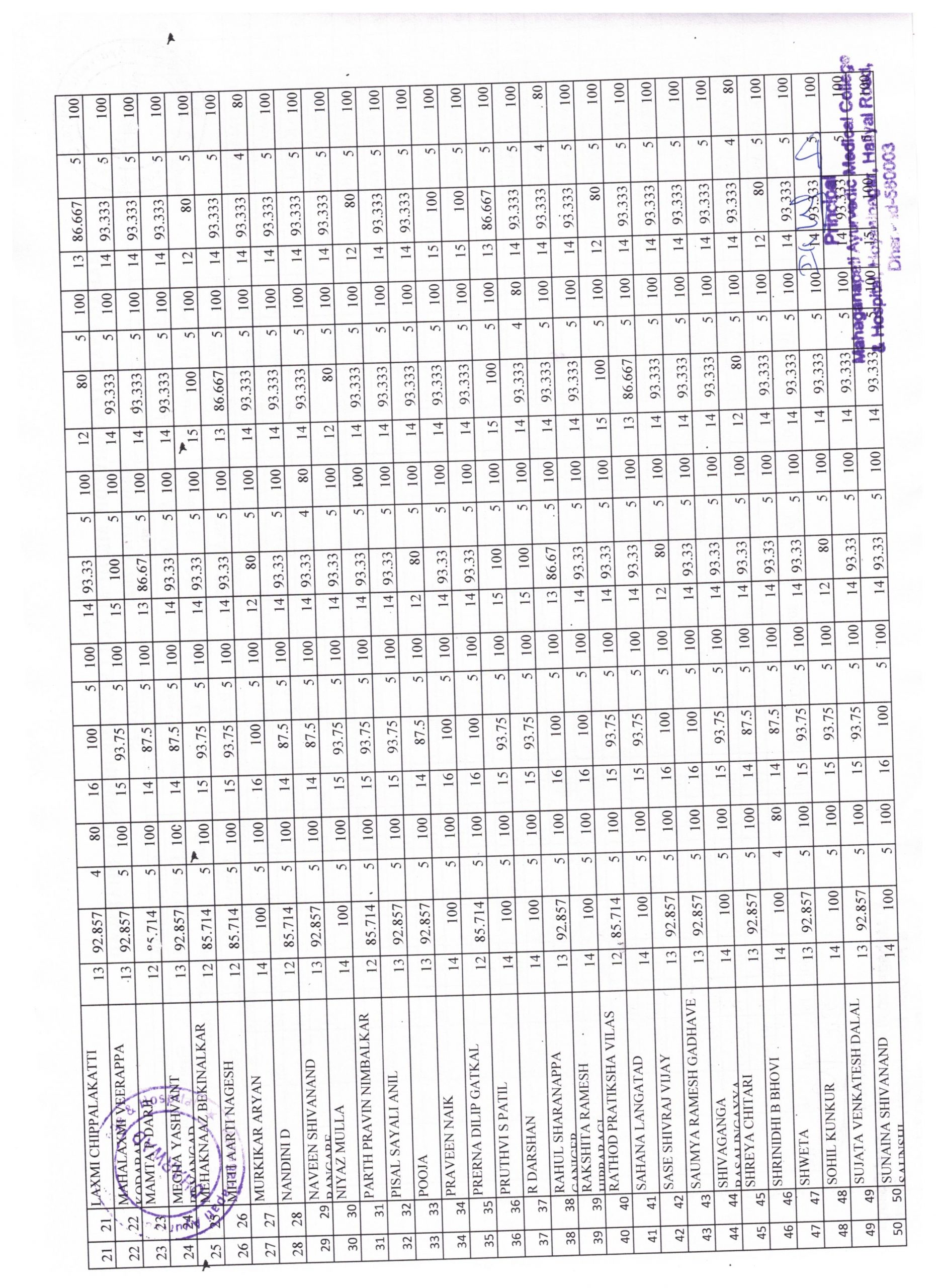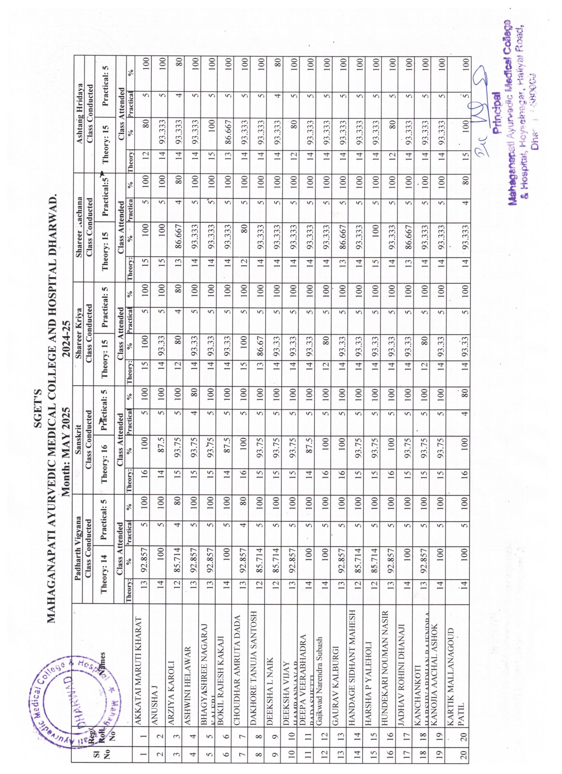 BAMS I Year (2024-25) students attendance report for the month of May 2025