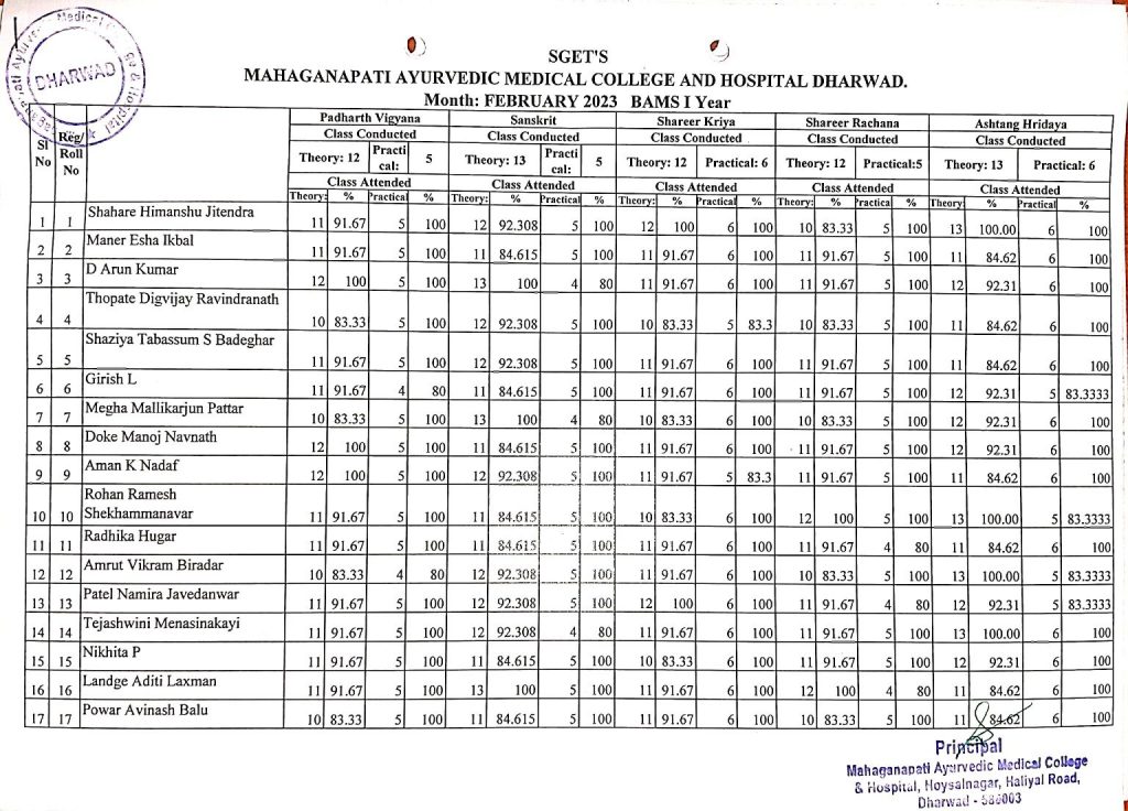 BAMS I year students attendance report for the month of February 2023