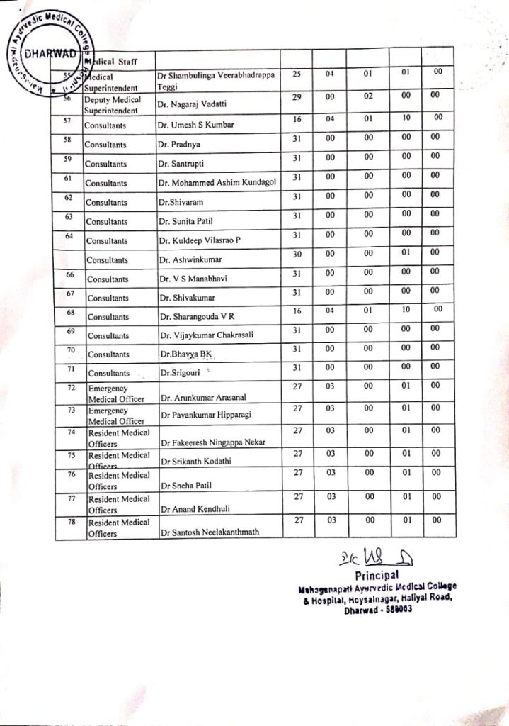 Principal Mahaganapati Ayurvedic Medical College and Hospital, Call Us +919886808070,