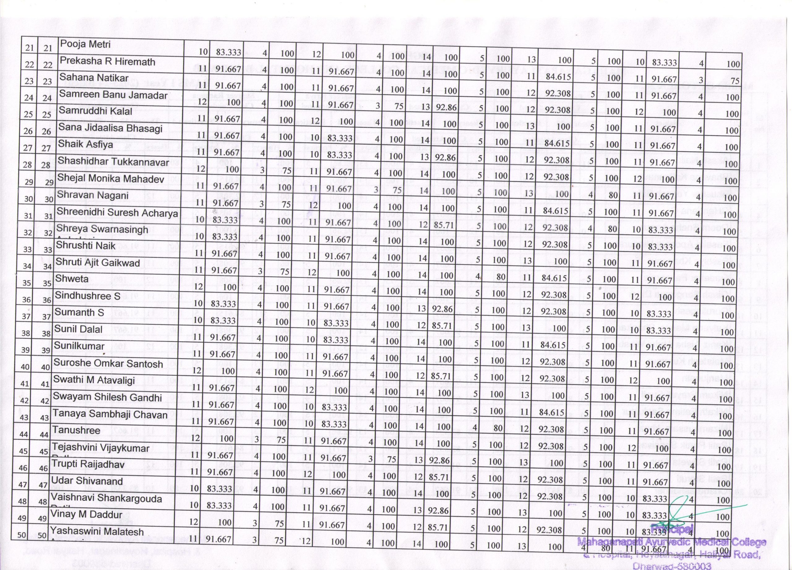 I phase BAMS (2023-24) Students Attendance for the month of October 2024