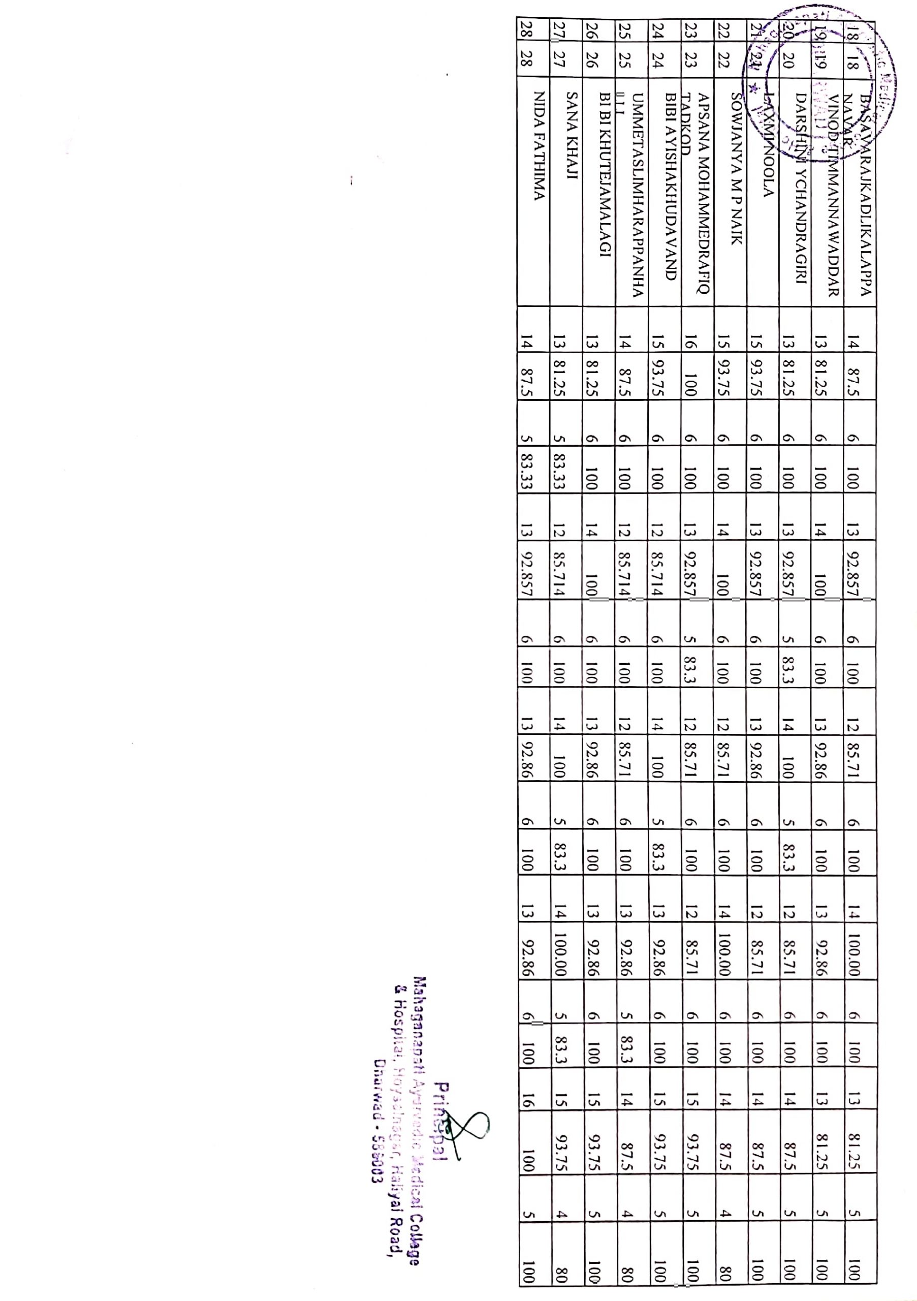 I year(2021-22 batch) BAMS Students attendance report for the month of May 2023