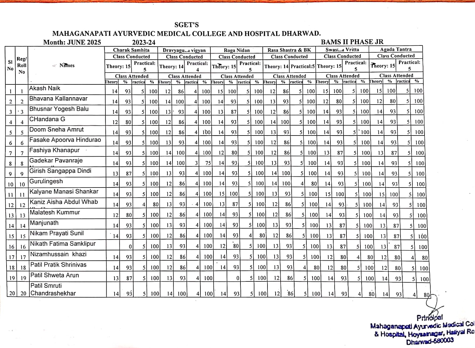 II Phase Jr (23-24) BAMS Students attendance report for the month of July 2025