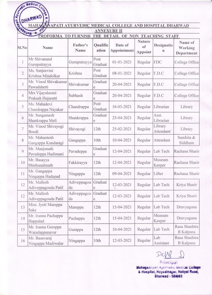 • Non Teaching Staff details
