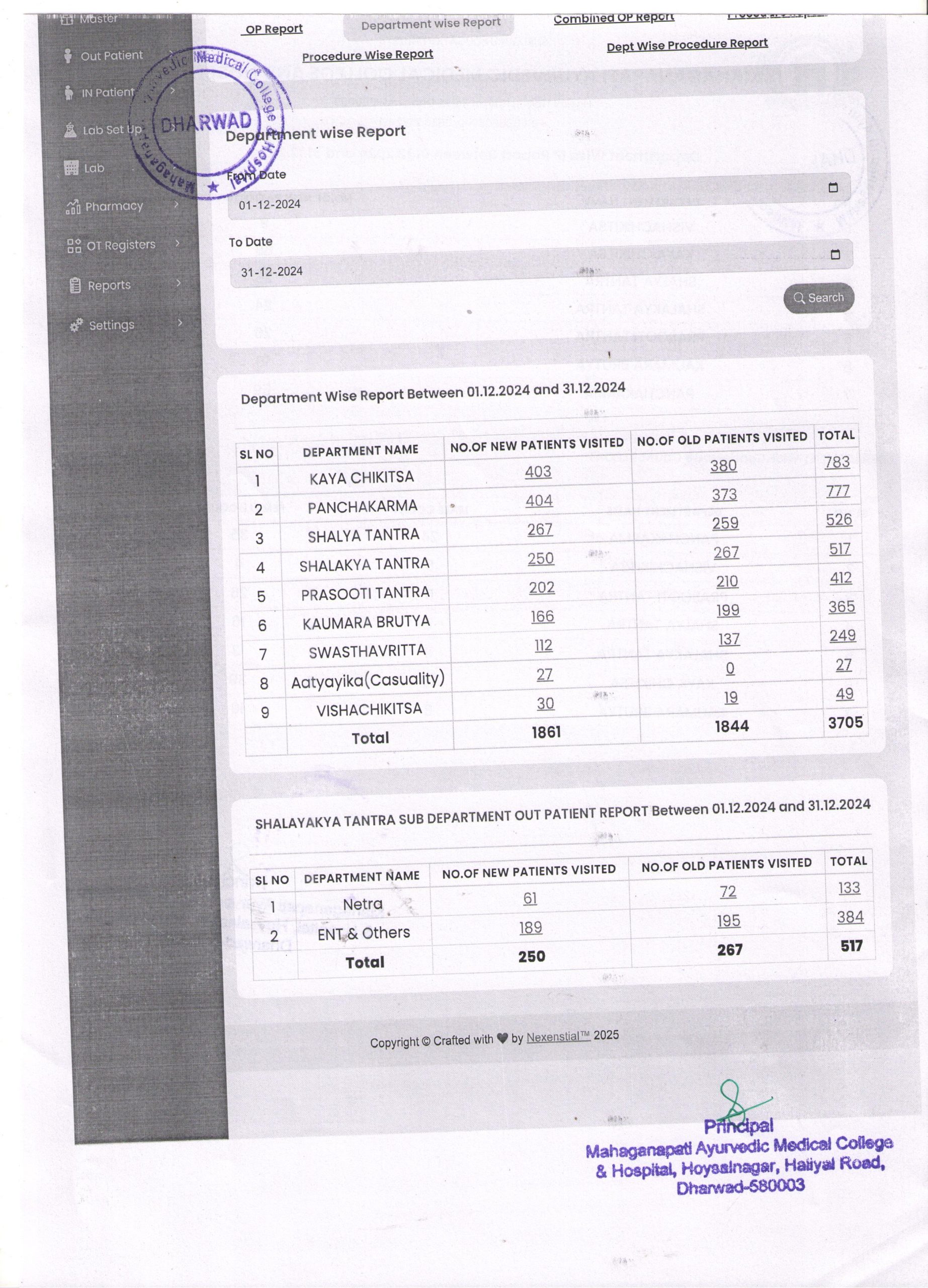 OPD report for the month of December 2024