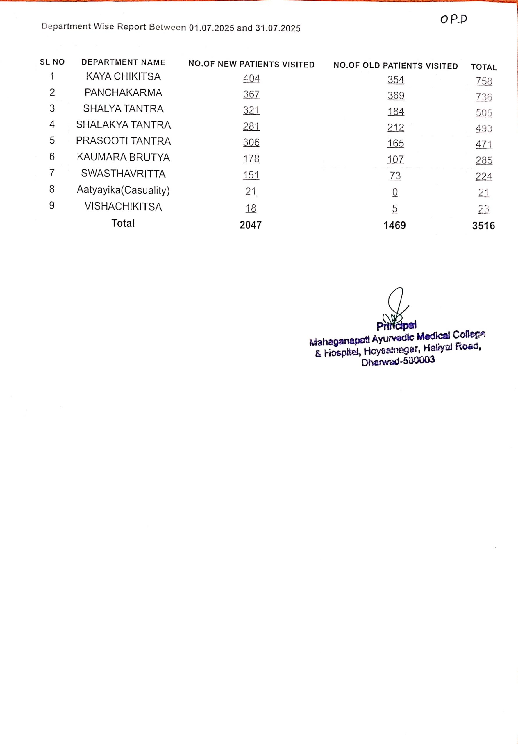 OPD Report for the Month of July 2025