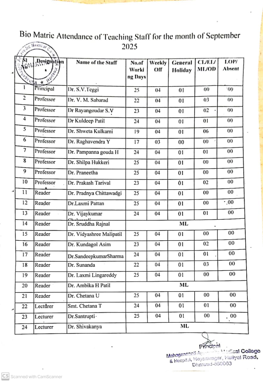 Principal Mahaganapati Ayurvedic Medical College and Hospital, Call Us +919886808070,