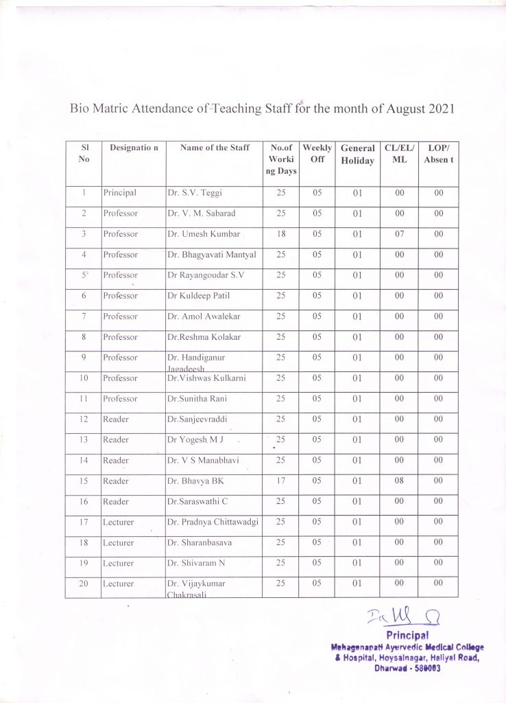 Principal Mahaganapati Ayurvedic Medical College and Hospital, Call Us +919886808070,