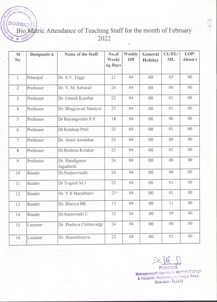 Principal Mahaganapati Ayurvedic Medical College and Hospital, Call Us +919886808070,