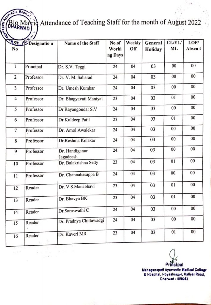Principal Mahaganapati Ayurvedic Medical College and Hospital, Call Us +919886808070,